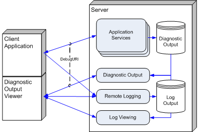 - Establishing a diagnostic output channel from the server to the client. The goal here is to give Web developers familiar capabilities such as the ability to see exception diagnostics, to display diagnostic output and dump complex variables.